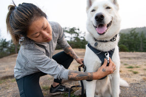 The Front Range Harness is a padded everyday dog harness that is easy to put on and comfortable for dogs to wear. A key piece of gear for canines embarking on a life of adventure with their humans, the harness features two leash attachment options: an aluminum V-ring centered on the dog's back for everyday walks, and reinforced front clip at the dog's chest to redirect dogs that pull on leash. The ID pocket keeps dog tags quiet and easily accessible, and the reflective trim and light loop for The Beacon™ boost visibility in low-light conditions.