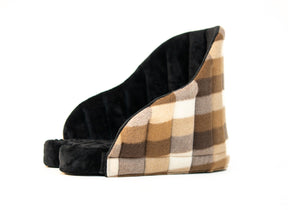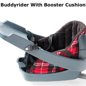 • Two black and plaid Buddyrider dog bike seat booster cushions