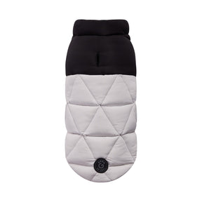 • Diamond-stitch quilted dog puffer design with modern colorblocking