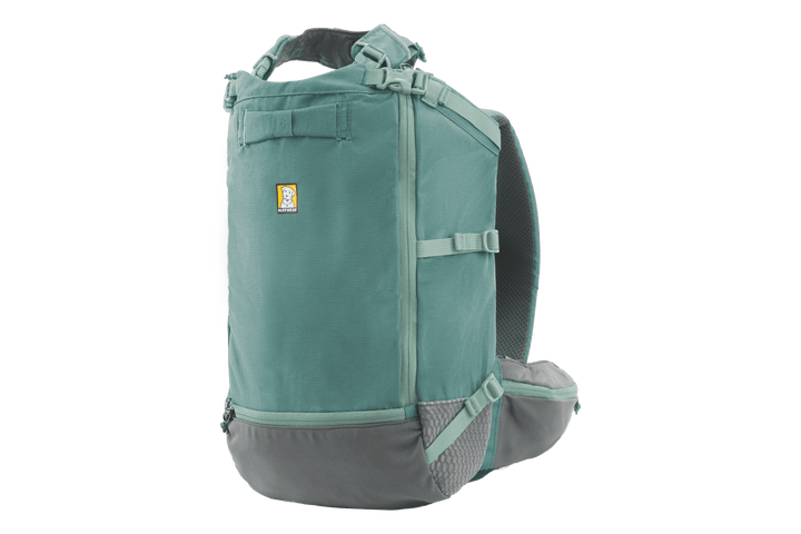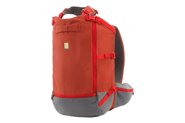 Use the external grab handle to lift and shoulder the pack. Once on, the pack distributes weight evenly for the human carrying the load, with padded shoulder straps, breathable back panel, adjustable torso length, and a supportive hipbelt for all-day comfort. Pockets on the hip belt give quick access to essentials like pick-up bags, treats, and most phones. Stash a soft flask, packable bowl, or extra layer in the external zippered stretch pocket at the base of the pack.