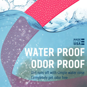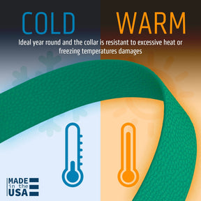 The pebble embossed dog collar is made from the authentic Biothane waterproof coated webbing with an anti-slip, pebble textured surface that provides a comfortable grip, and heavy duty waxed thread stitching. The fully waterproof coating protects against staining, discoloration and excessive dirt. Your four legged friend will be able to jump through puddles, swim in lakes, play in the snow or rain without the hassle of cleaning!