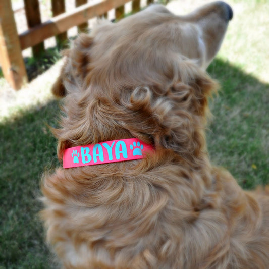 The colors on our waterproof collars are embedded in the material or protected under coating. They are designed to resist fading, cracking, or peeling. They stay vibrant and looking new much longer than traditional nylon or leather collars.