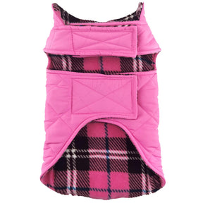 Reversible Fleece Lined Dog Puffer Winter Coats - Pink Plaid