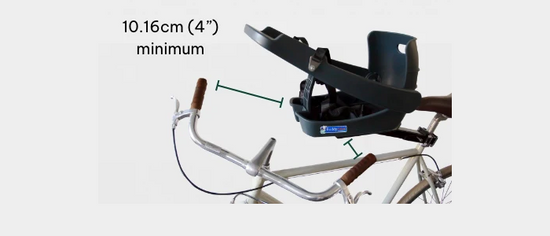 10.16cm (4") of clearance is required so the handlebar does not hit the Buddyrider. (Note that the image is shown with the Buddyrider position at its furthest point back from the handlebars. The exact position on your bike may vary.