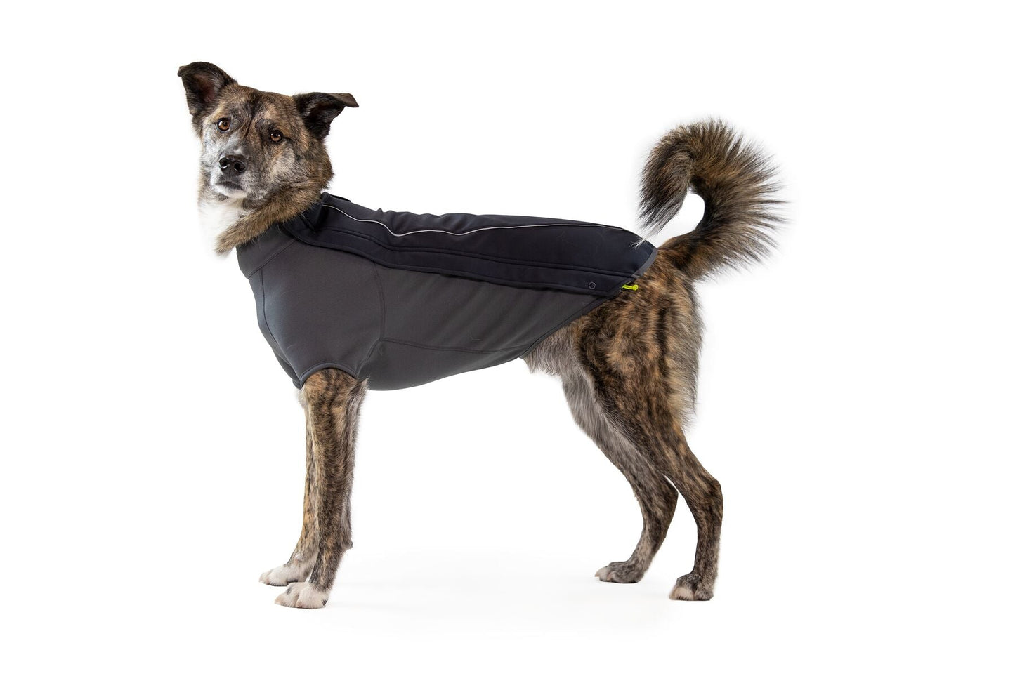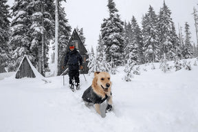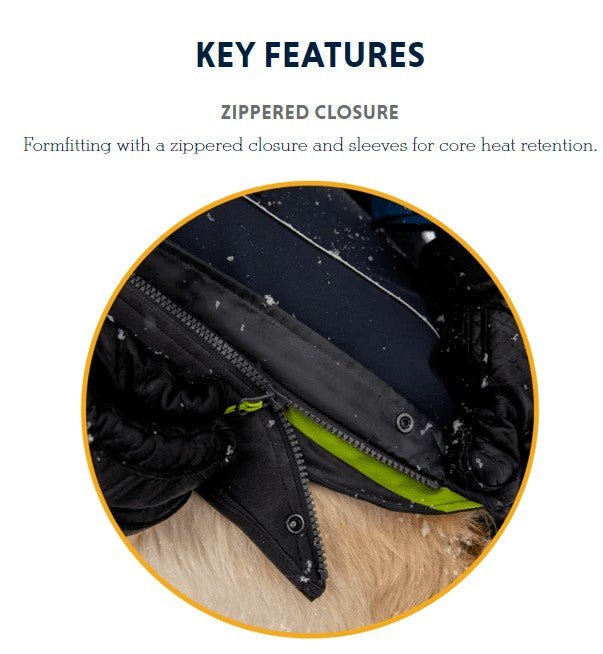 The Ruffwear Cloud Chaser™ extends activities in inclement weather, protecting against rain, snow, wind and cold. A convenient zipper on the left side of the coat allows for easy on/off. KEY FEATURES upper fabric protects from the elements Coated lower fabric sheds water, snow and dirt Fleece-lined interior maintains core body heat Sleeved style provides full coverage for maximum warmth and full range of motion Zippered closure for high-performance fit Low-light visibility with reflective trim and light loop for attaching The Beacon™ With the Cloud Chaser, dogs can forge ahead in the spectrum of inclement weather that winter serves up. The jacket's upper panel is a breathable water and windproof softshell that stands up to rain, snow, wind, and cold temps. The fleece-lined lower panel holds in core heat and sheds dirt and moisture. Stretch technical fabrics with a zippered closure make for a warm, formfitting sleeved jacket that's made to move. With reflective trim and a light loop for The Beacon (sold separately), dogs get a boost in visibility so shorter days don't have to mean shorter excursions. What's new in this latest version? Improved performance and durability on the stretch lower panel. WASHING INSTRUCTIONS Secure fasteners Wash in cold water Gentle cycle Mild detergent Hang dry Do not bleach Do not iron Do not dry clean