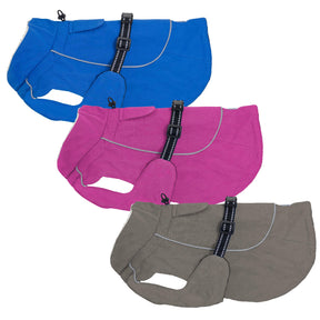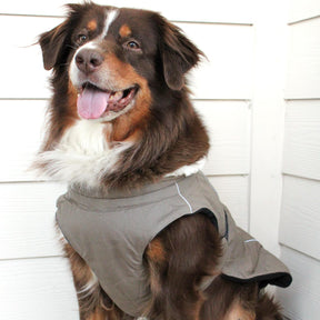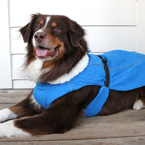 Get ready for the great outdoors! The Alpine Tuf Terrain dog coat is made with a tough cotton canvas outer layer while still keeping the cozy fleece lining and soft sherpa-lined collar. Straps are adjustable with reflective safety trim. Coat offers covered D-ring access hole and is available in sizes XS through 5XL. The cotton canvas fabric is durable and water resistant - excellent for hiking, herding, or trekking through the urban jungle.