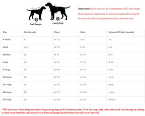 **We now carry chest strap extenders for growing dogs and in-between sizes. If on the cusp, help reduce the need to exchange by adding a chest strap extender.