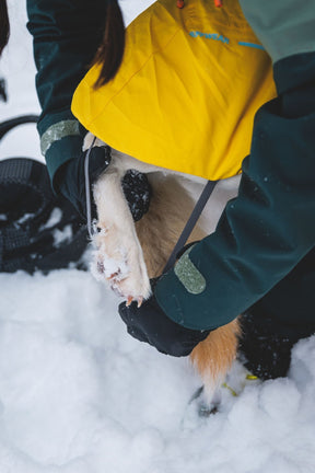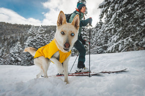 The Ruffwear Vert™ is a waterproof, windproof, breathable jacket designed for winter conditions. Dogs can hold their stride with the Vert Jacket no matter what kinds of cold and wet elements are thrown their way. Designed to embrace the wintry-mix that would otherwise mean spending the day inside. The Vert features extended, waterproof coverage over the hips and thighs and recycled, lofted insulation that packs exceptional warmth. Leg loops keep the jacket in place when the winds kick up, and the leash portal allows the Vert to be worn over a harness.